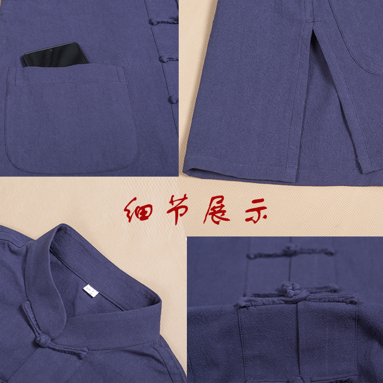 Cotton linen suit men's short sleeve Tang suit middle-aged and elderly loose shirt tea service Chinese culture Chinese clothing meditation summer style