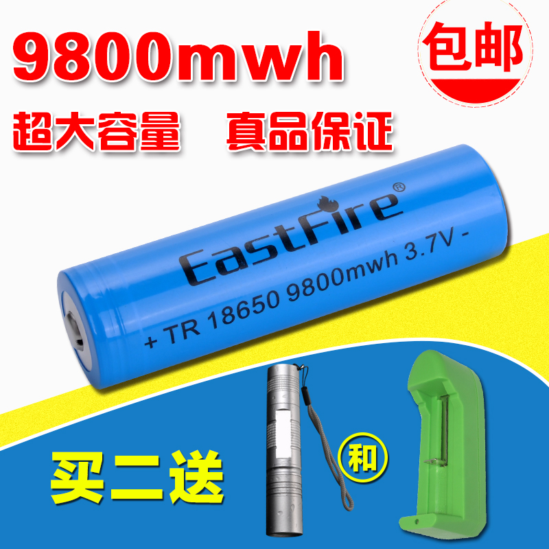 eastfire18650 lithium battery large capacity 3 7V small fan mobile charging strong light flashlight 4 2v