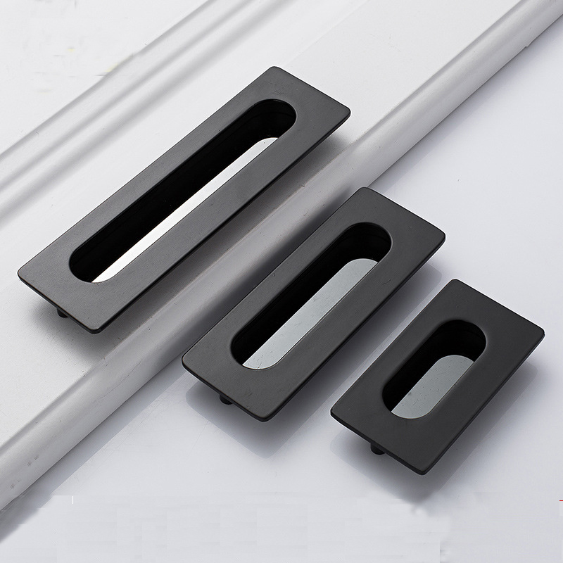 Hole distance 64 96 128 silver black and white drawer dark pull handle tatami groove flat pull handle move door invisible handrail