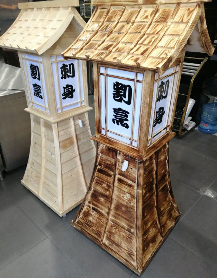 Japanese cuisine light box house-shaped lighthouse wooden box vertical charcoal-fired white wood light box characteristic light box sashimi light box glow