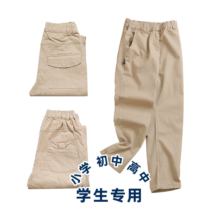 Children's khaki school pants summer boys and girls increase winter casual spring and autumn long pants middle and primary school students rice navy blue