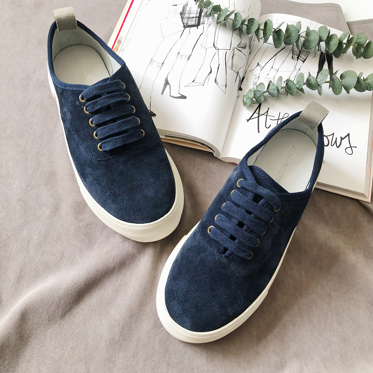 ALIN custom large size women's shoes spring and summer hemp cotton canvas lace-up flat sports thick bottom casual shoes one pedal large size