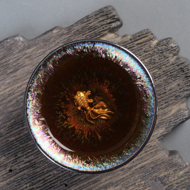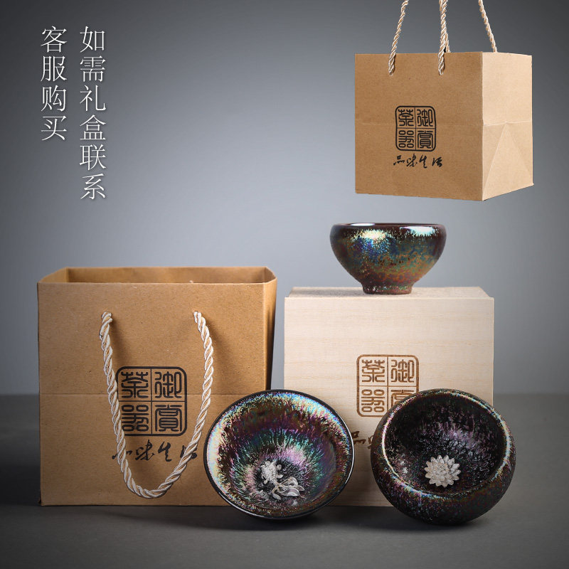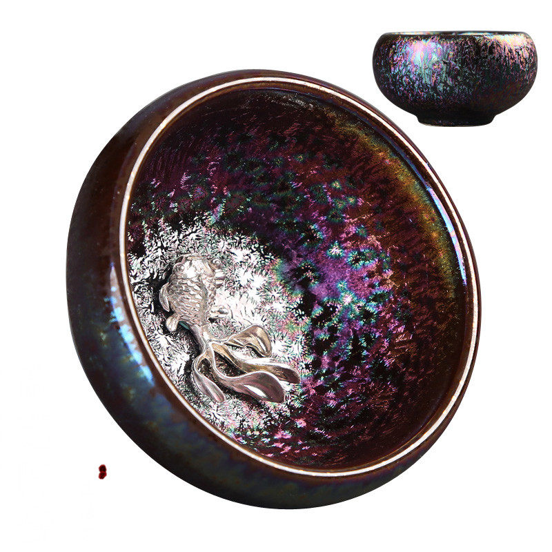 Tianmu colorful Jianzhan inlaid silver teacup ceramic kung fu tea set drinking tea cup silver fish cup master cup single cup tea cup bowl