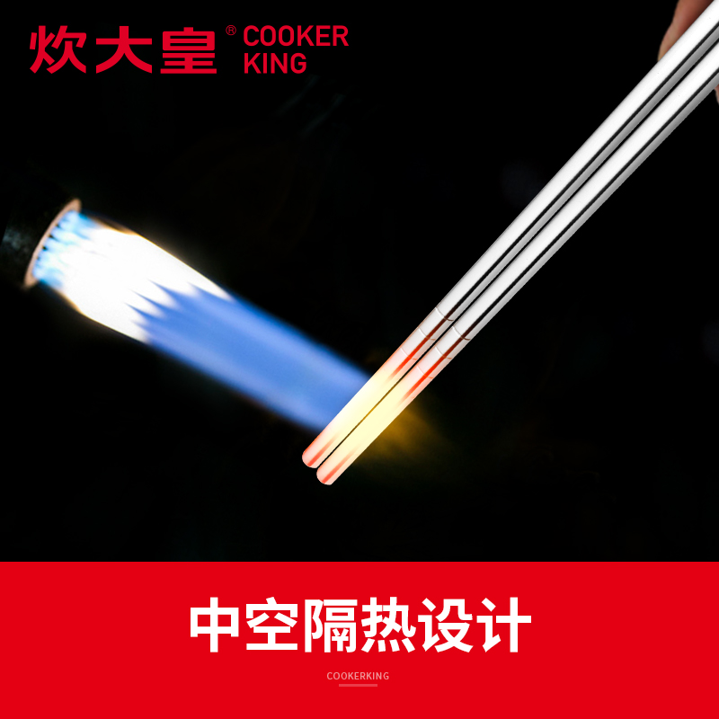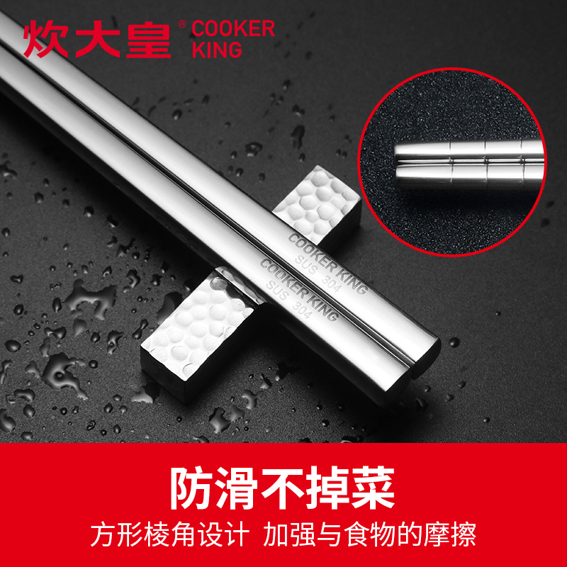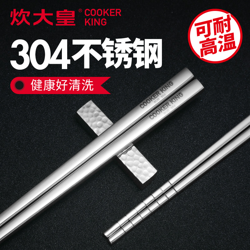Cooking emperor stainless steel chopsticks 304 tableware set non-slip anti-scalding kitchen family square 5 pairs of 10 pairs of metal chopsticks