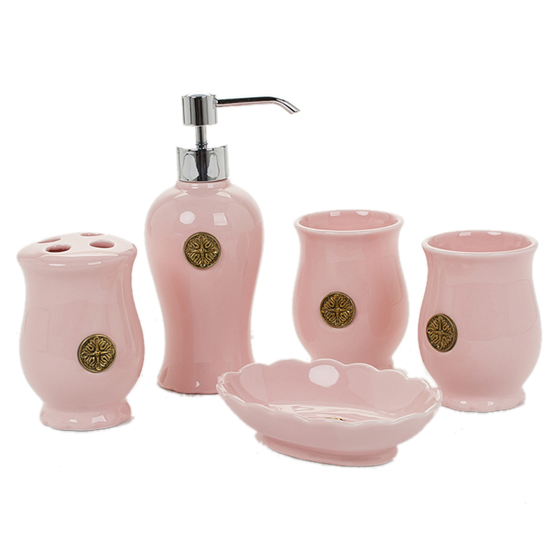 Wash Five Pieces Of Brass Porcelain Paper Towels Box Copper porcelain Tray Copper Porcelain Trash Cans Bronze Porcelain Toothbrushes Shelf White Porcelain Pure Copper Pink Bathroom Five Pieces Sets