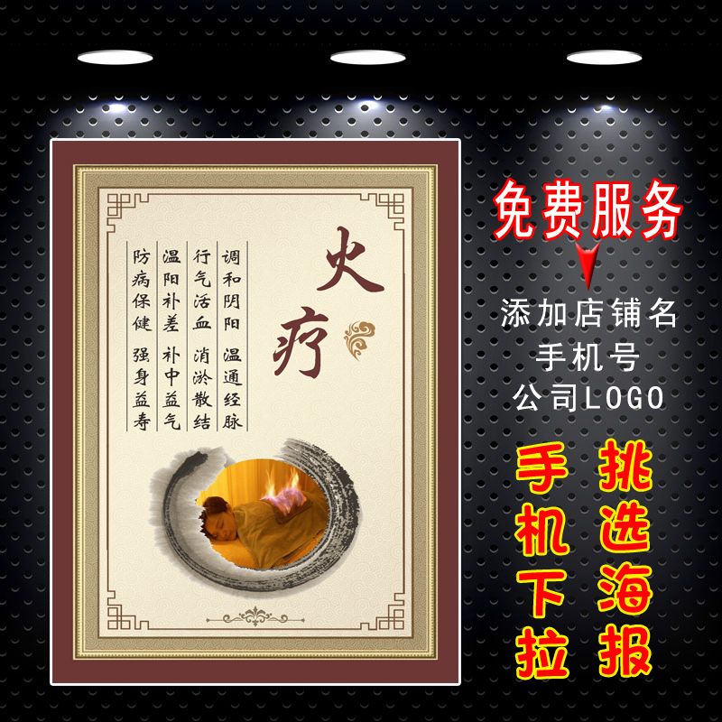 Chinese medicine health acupuncture fire therapy scraping massage pp glue poster self-adhesive painting beauty health knowledge advertisement hanging painting