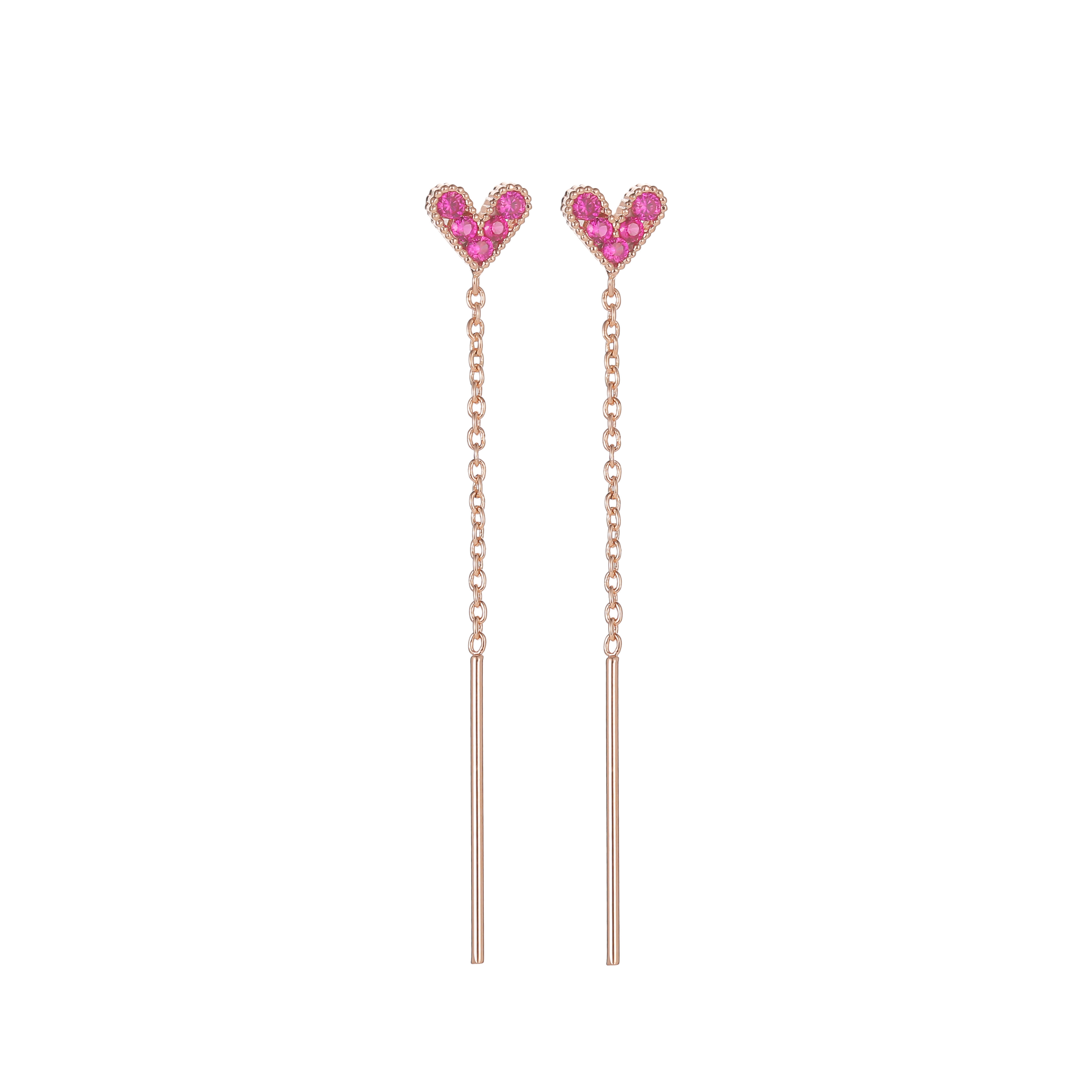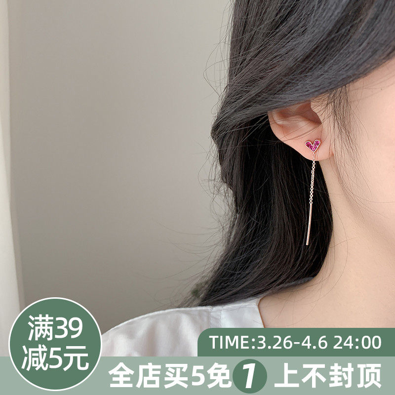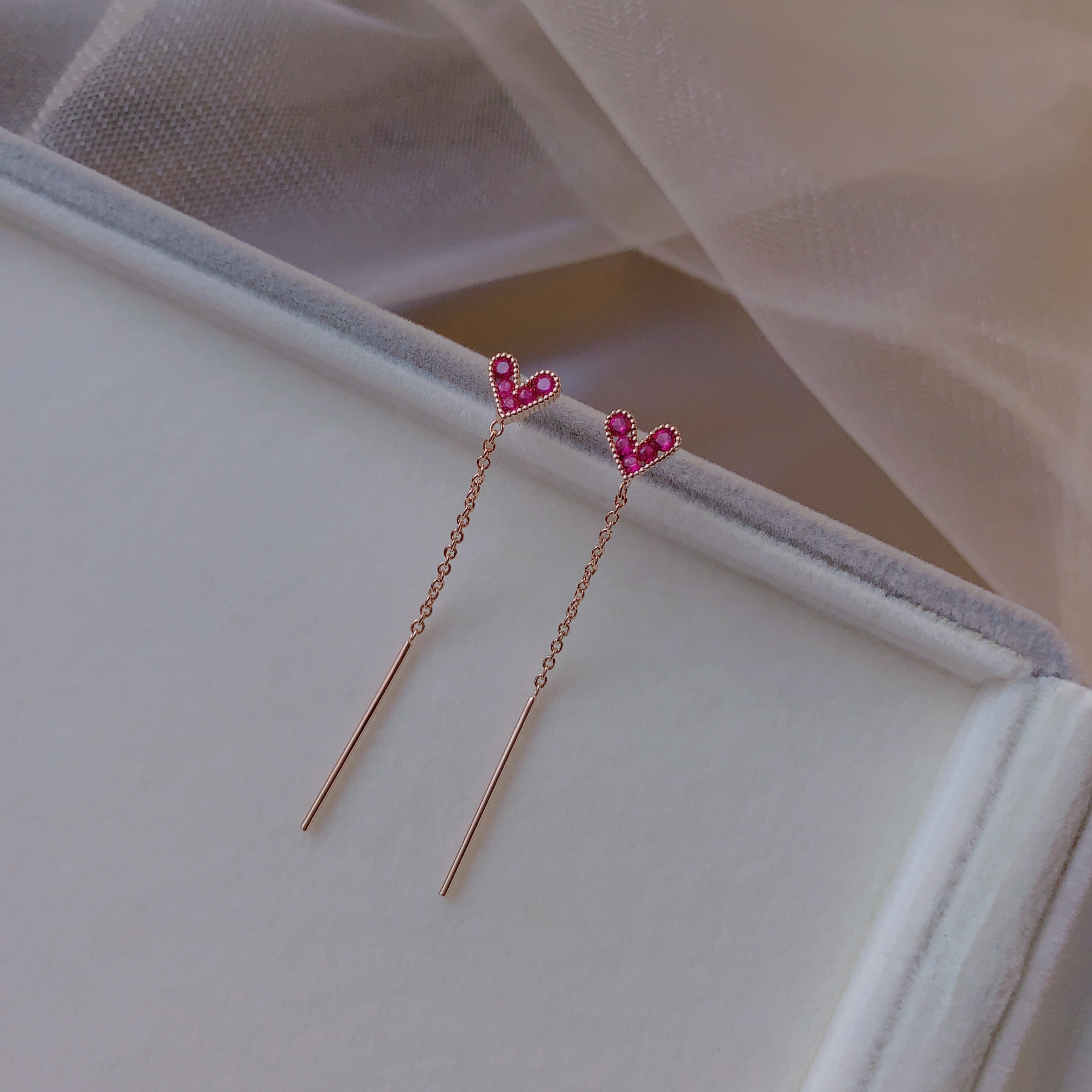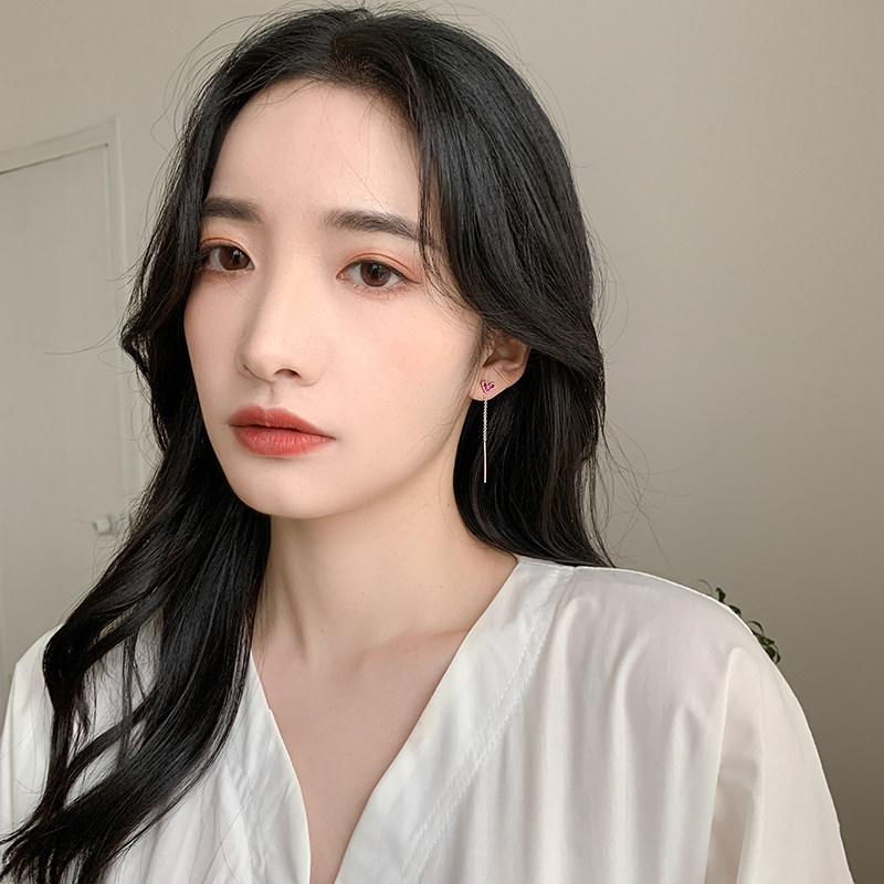 South Korea East Gate S925 Pure Silver Needle Temperament Long Version Ear Pendant Rose Red Love Peach Heart Flow Sueared Earrings Woman