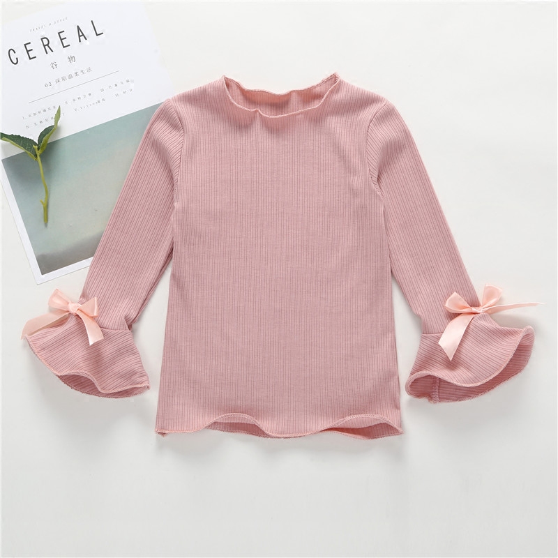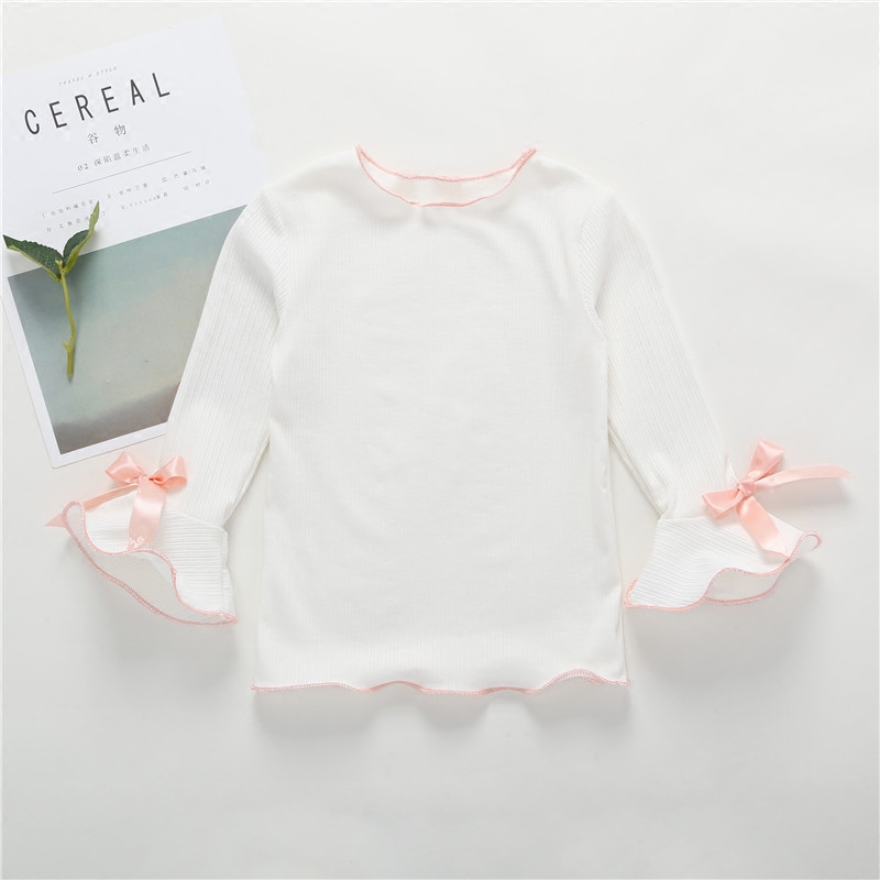 Girls beat long sleeve T shirt in spring and autumn children baby white tops Han Edition 2018 new pure cotton