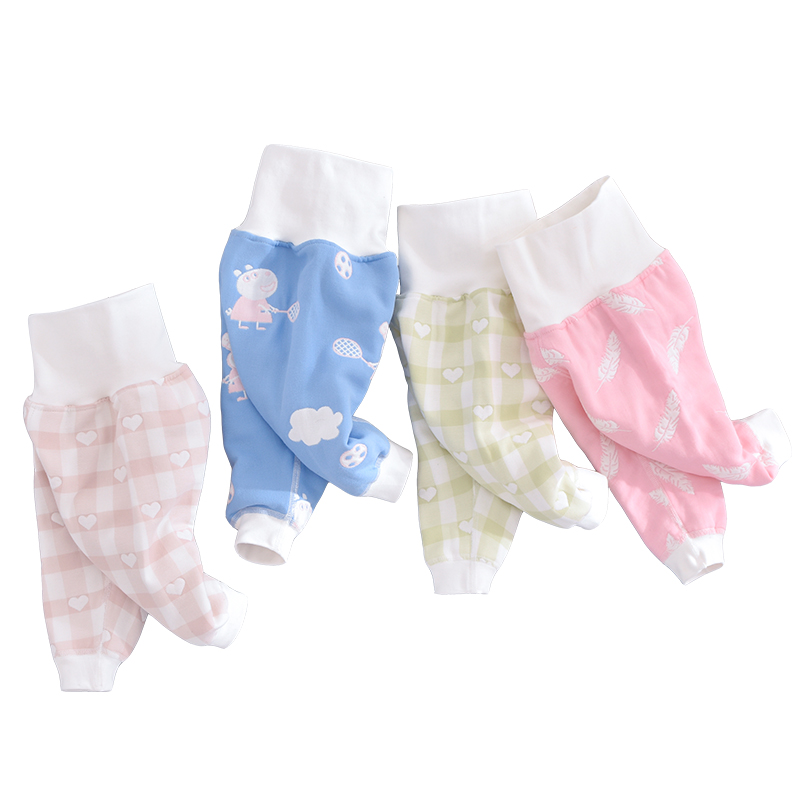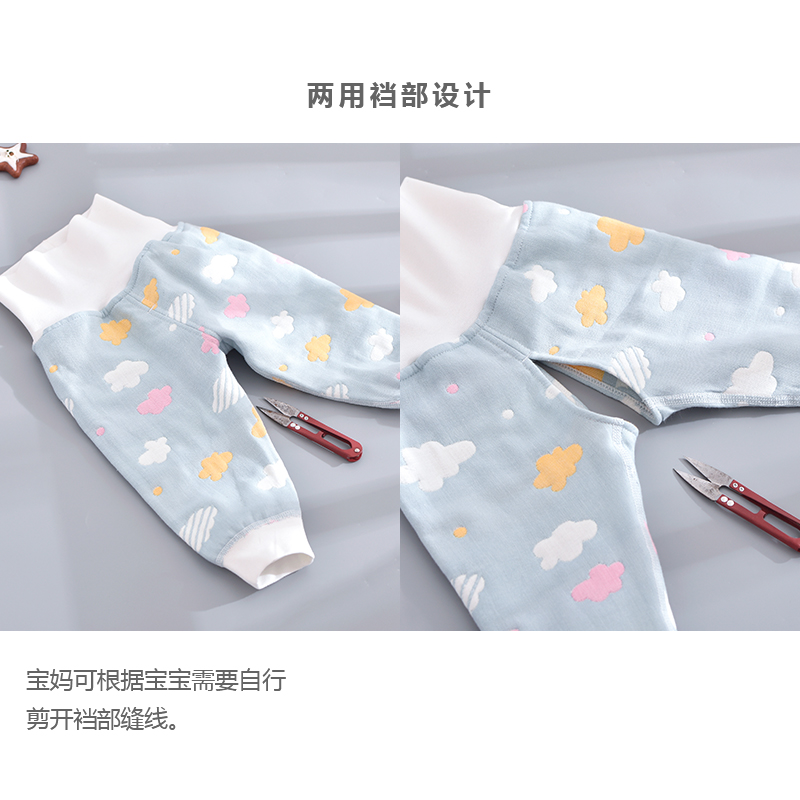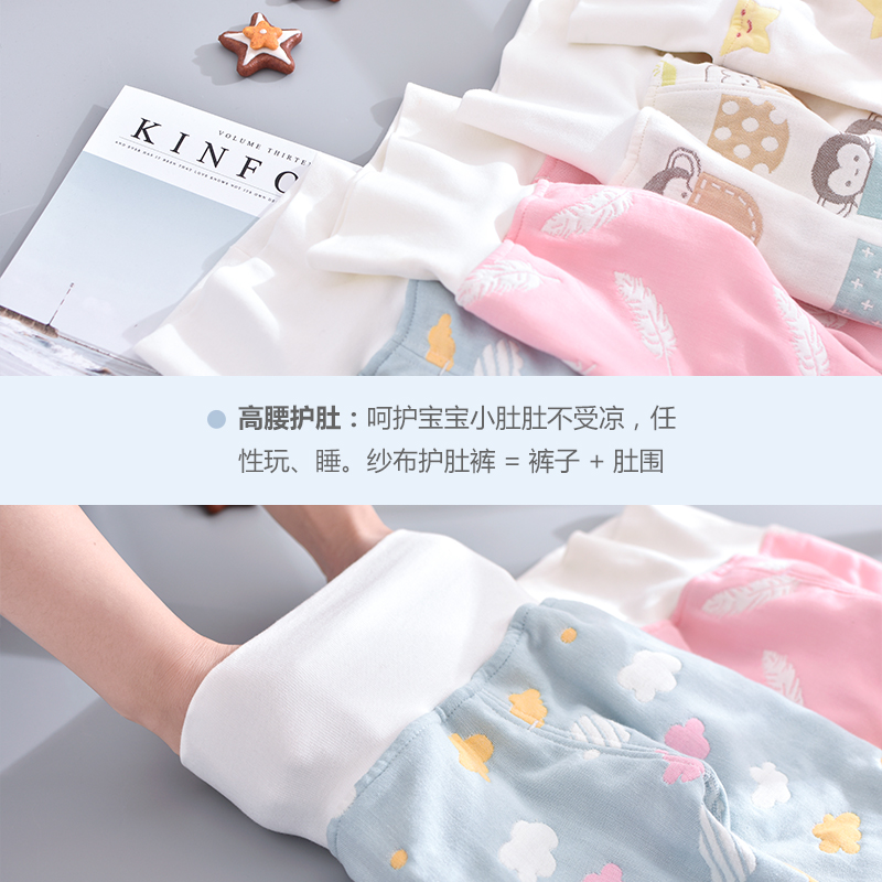 Baby high waist belly protection pants cotton gauze quick-drying breathable anti-cool boys and girls baby can open file outer wear trousers