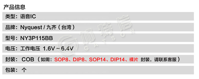 NY3P115BB package COB Nyquest nine new original voice IC OTP full range