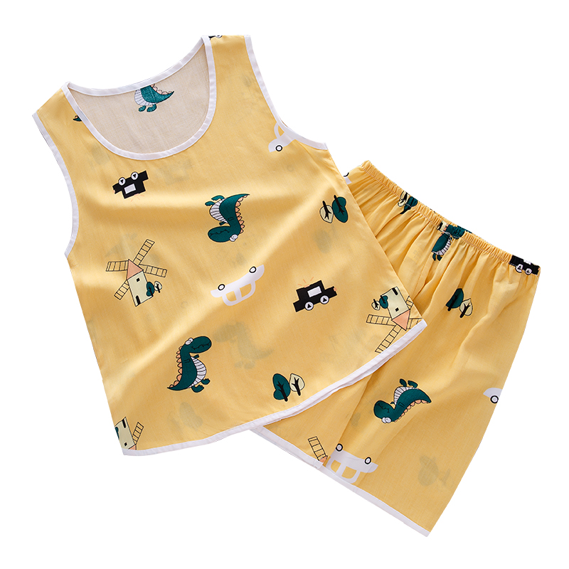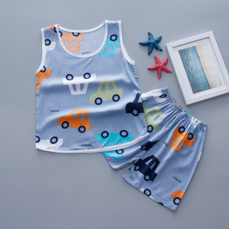 Summer Children's Home Clothing Boy Girl Slim Silk Vest Kid Summer Sleeveless Suit Baby Cotton Silk Pyjamas