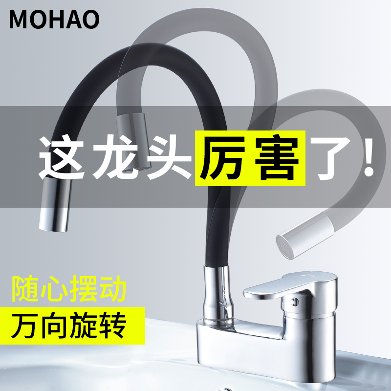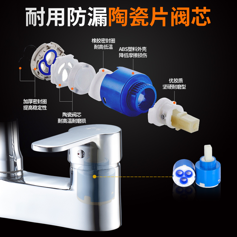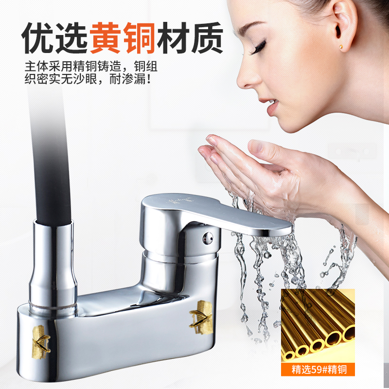 Two-hole basin hot and cold water faucet washbasin bathroom cabinet three-hole washbasin powder room universal rotatable faucet