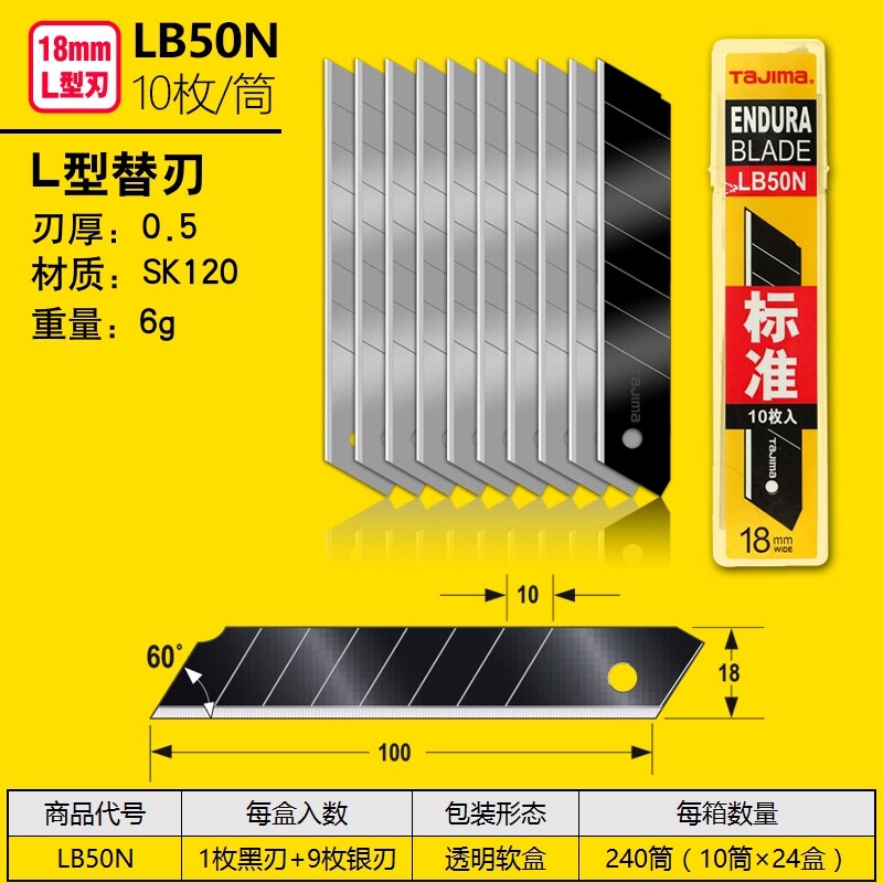 Tajima blade utility knife 18mm large blade Japan imported wallpaper blade black blade LB50H LB50N