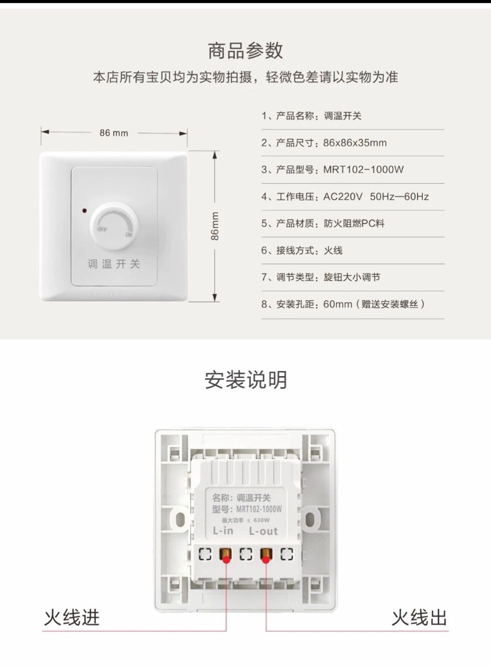 1000W stepless temperature control switch electric fire box fire bucket heater fan electric heater oven oven temperature control