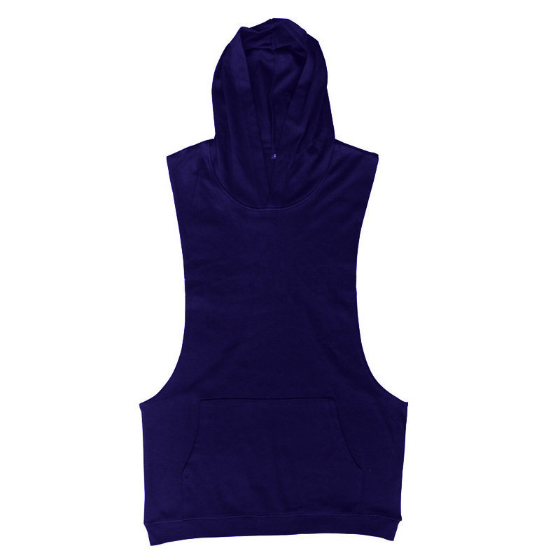 Cross-border Summer Men's Slim Fit Bodybuilding Fitness Sleeveless Cap Sweatshirt Pure Color Sports Hooded Sweatshirt