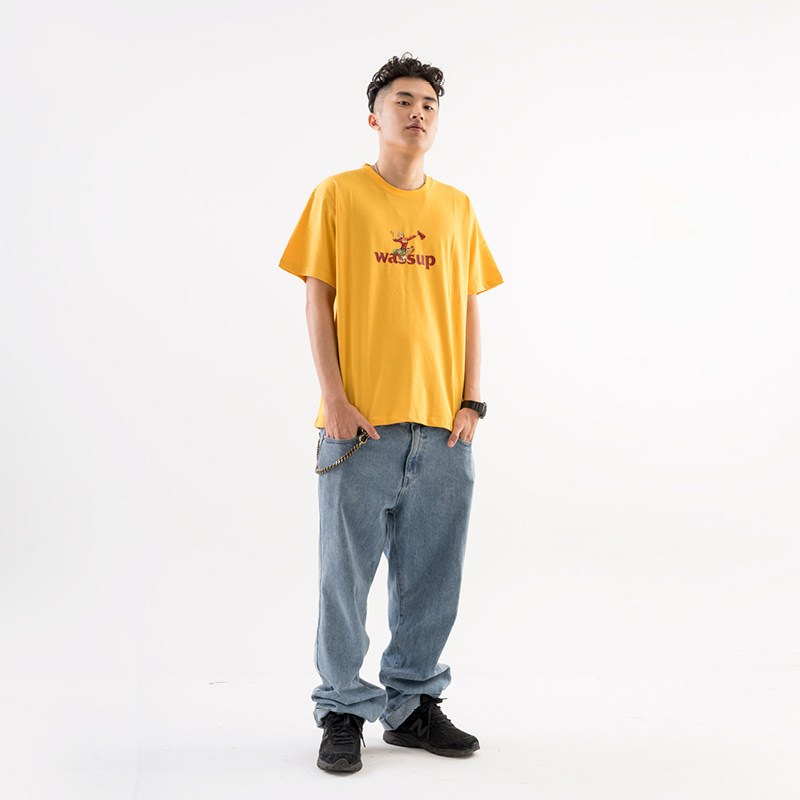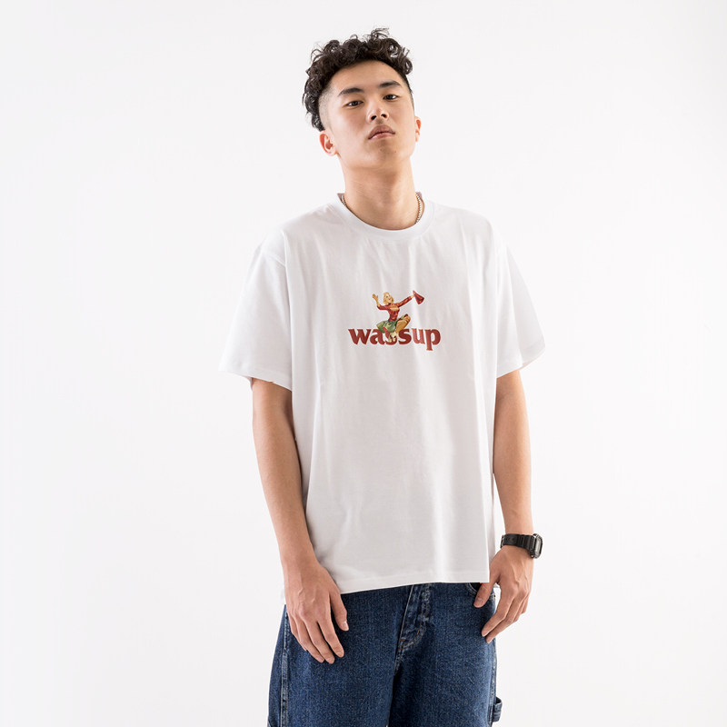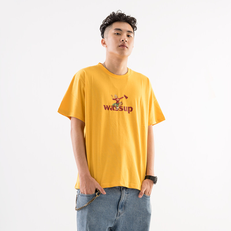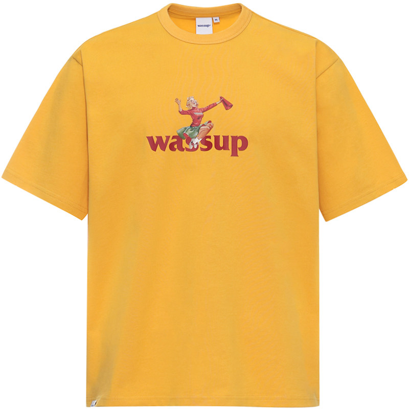 WASSUP summer tide brand T-shirt niche poster girl printing yellow and white loose short-sleeved men and women lovers