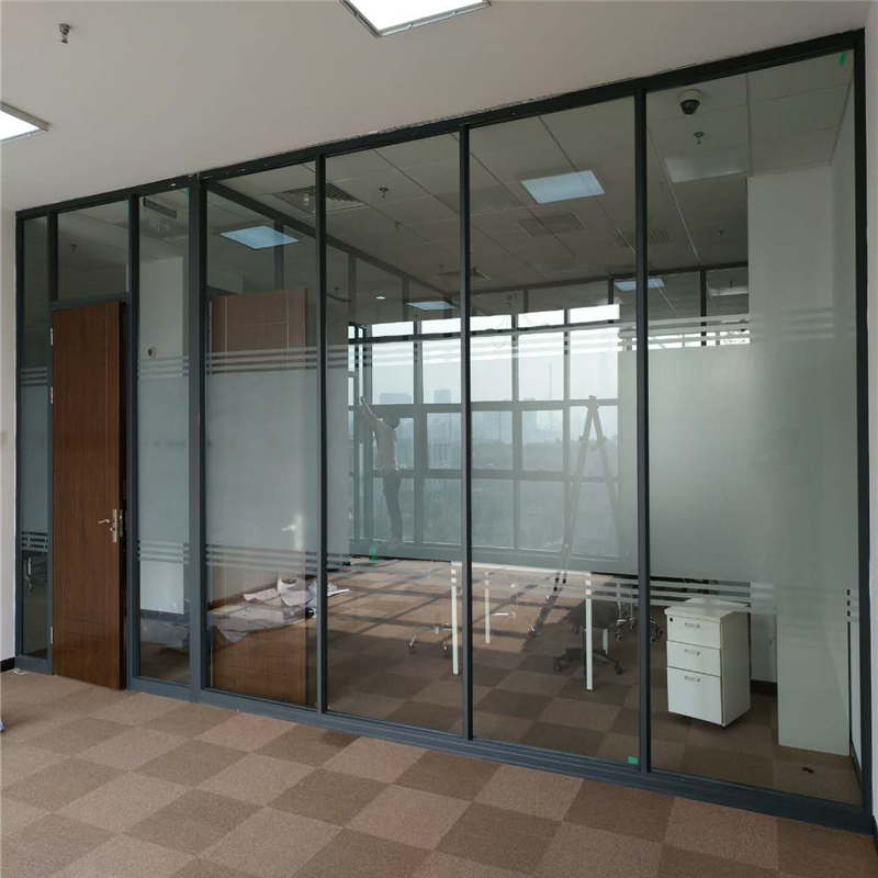 Office High partition 86 Monolayer 10mm Tempered Glass With Frosted Film Aluminum Magnesium Alloy Profile Division Partition Wall