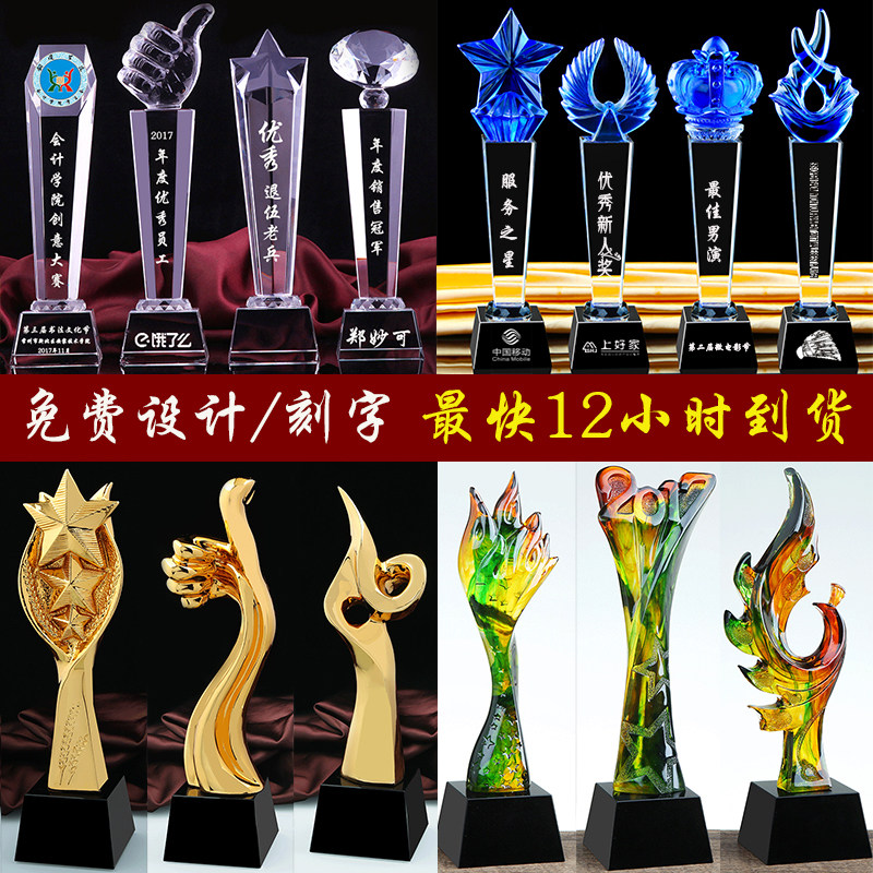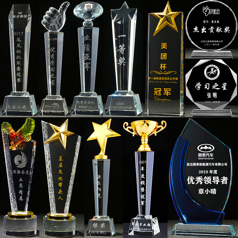 Crystal trophy creative custom thumb five-pointed star authorization card employee basketball football game champion custom production