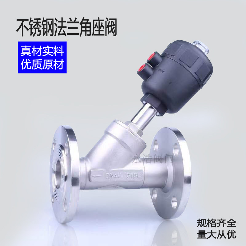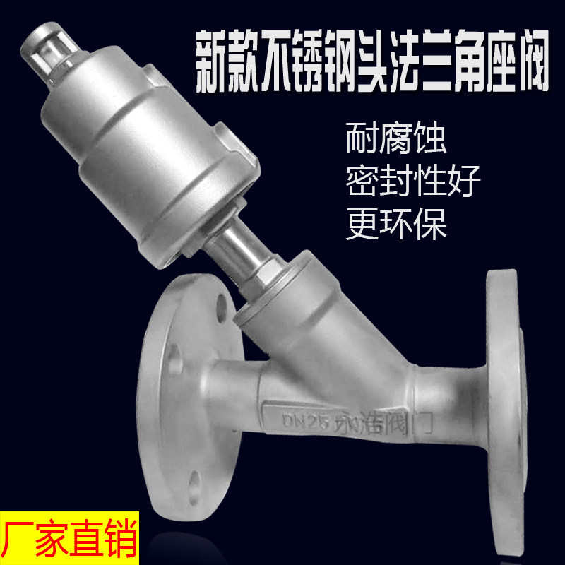 304 pneumatic flange angle seat valve stainless steel pneumatic Y type high temperature resistant flange steam angle seat valve DN15 20