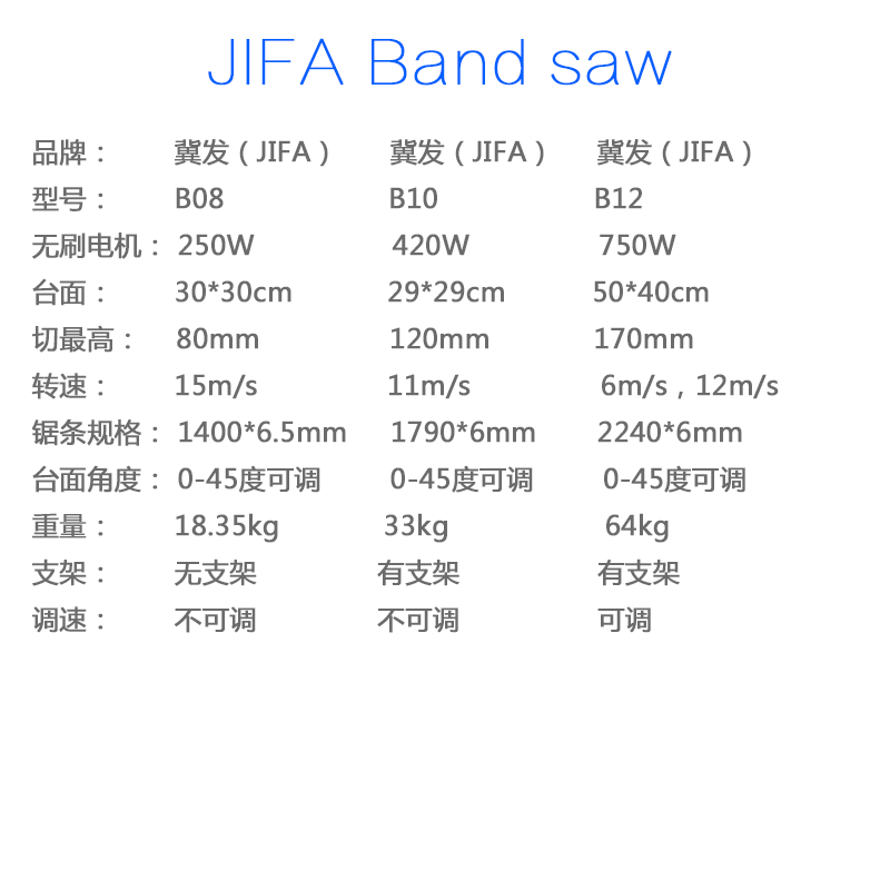 8 inch band saw (1 saw blade included) 10 inch band saw (1 saw blade included) 12 inch band saw (including one blade)