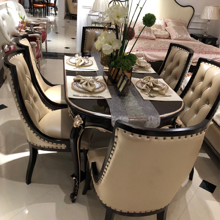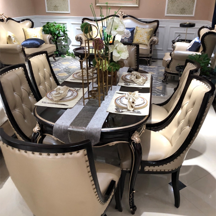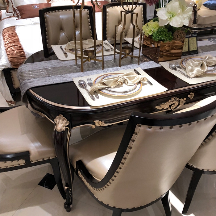 European dining table and chair combination 6 people neoclassical light luxury solid wood dining table Dining table Simple modern oval dining table and chair