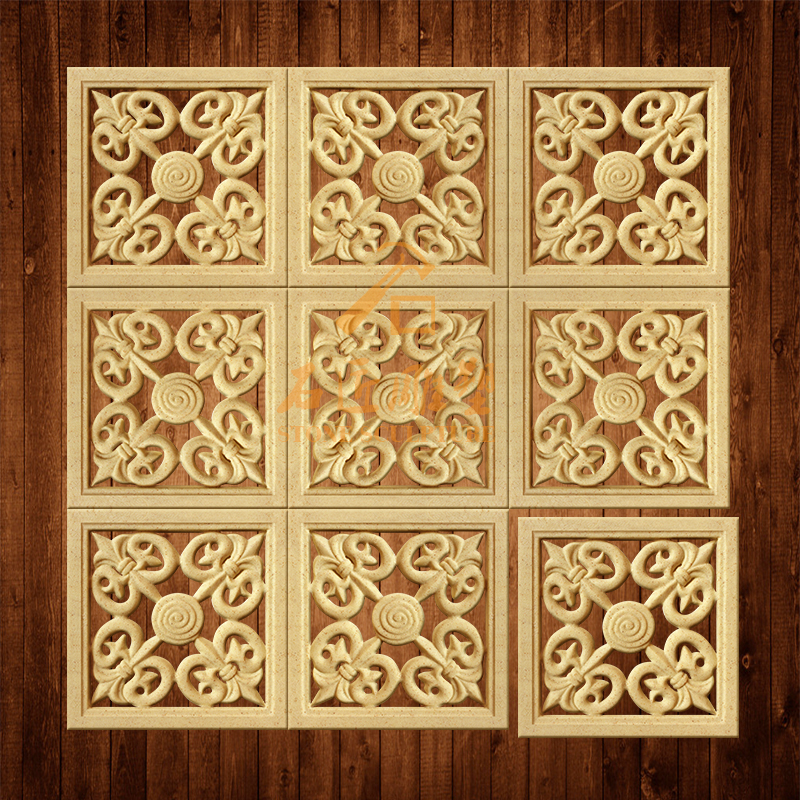 Artificial sandstone relief TV Background wall Cubism Culture stone pure handmade Chinese style decorative plate hollowed floral decoration plate