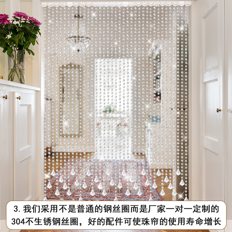 Door curtain Bead curtain Partition curtain Punch-free crystal curtain Living room soft sister room screen bead chain decorative curtain Hanging curtain Bedroom