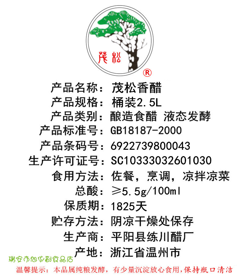 Zhejiang Nan Farmhouse Handmade Terraced to Brew Edible Balsamic Vinegar 5 Kg Barrel Loaded Kitchen Burning Condiment Condiment