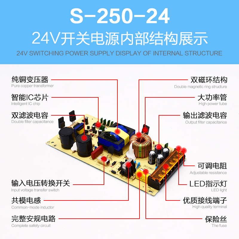 220V-turn 24V10A switching power supply 24V250W DC voltage stabilized DC24V transformer S-250-24V power supply