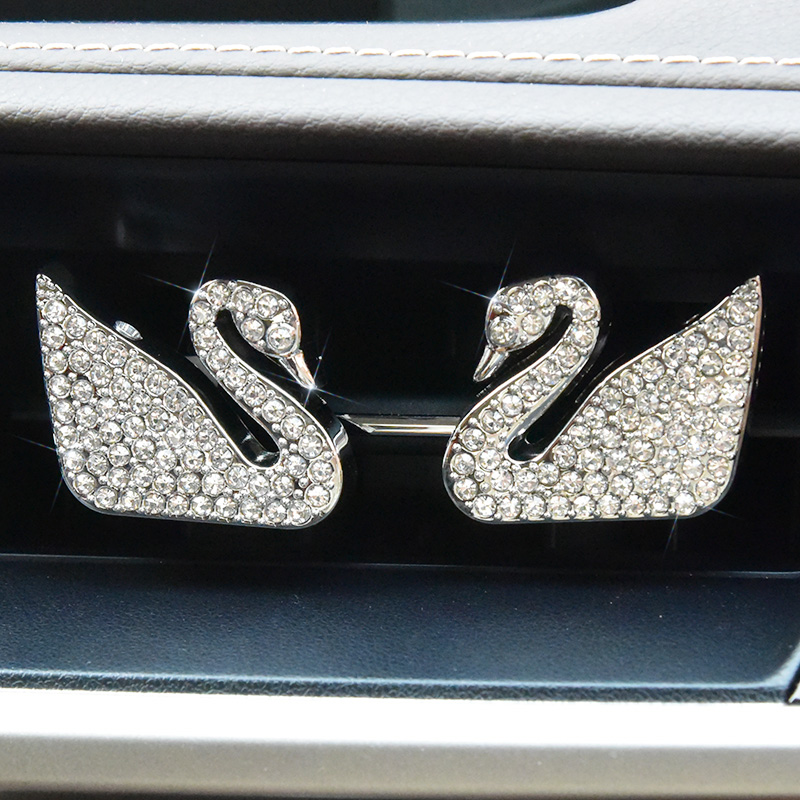 Inlaid drilling swan-wind-scented atmosphere-left side inlaid with diamond swan-on the right side inlaid drilling swan series - (a pair of clothes) inlaid with a swan pendant-Temptation Purple Inlaid Drilling Swan Pendant-Pearl White
