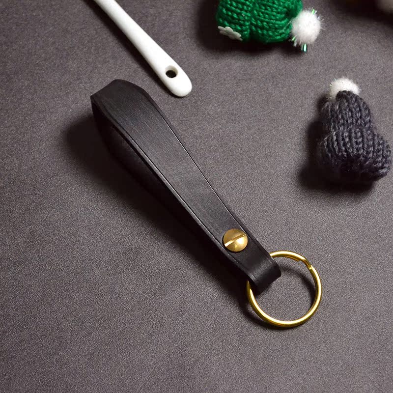 Handmade leather goods universal thick horse rein keychain leather copper couple gift head layer cowhide car keychain
