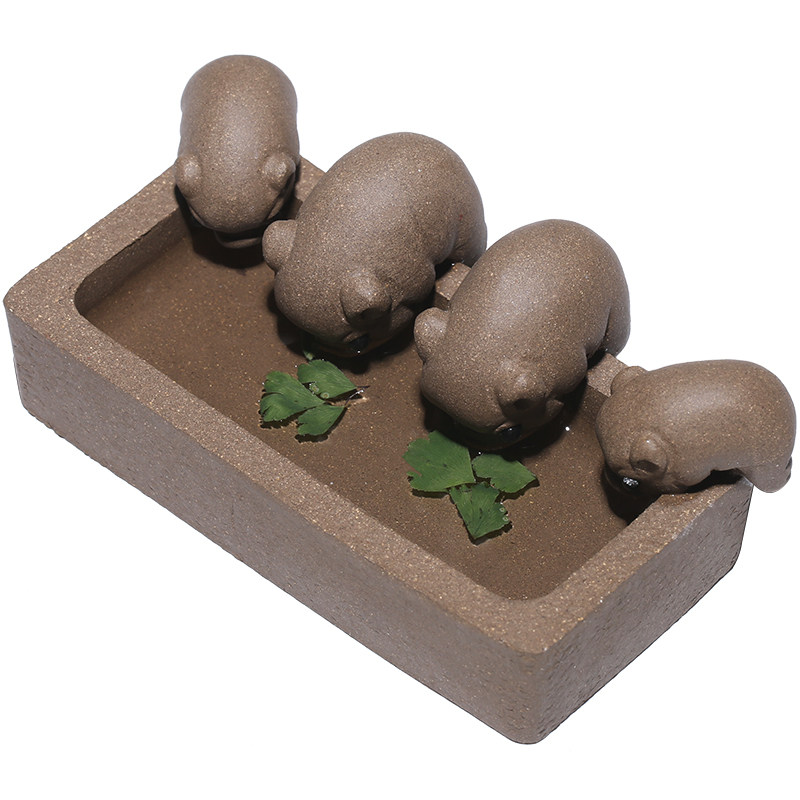 Moon Pot Tea Drinking Sink Creative Handmade Yixing Duanni Zisha Four Pigs Tea Play Tea Pet Ornament Plenty of Clothing and Food