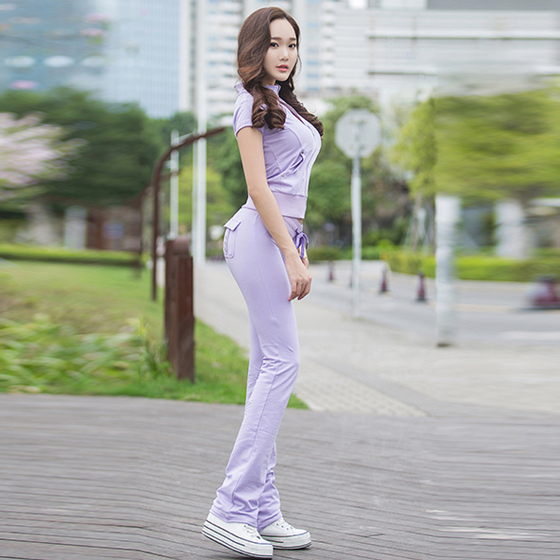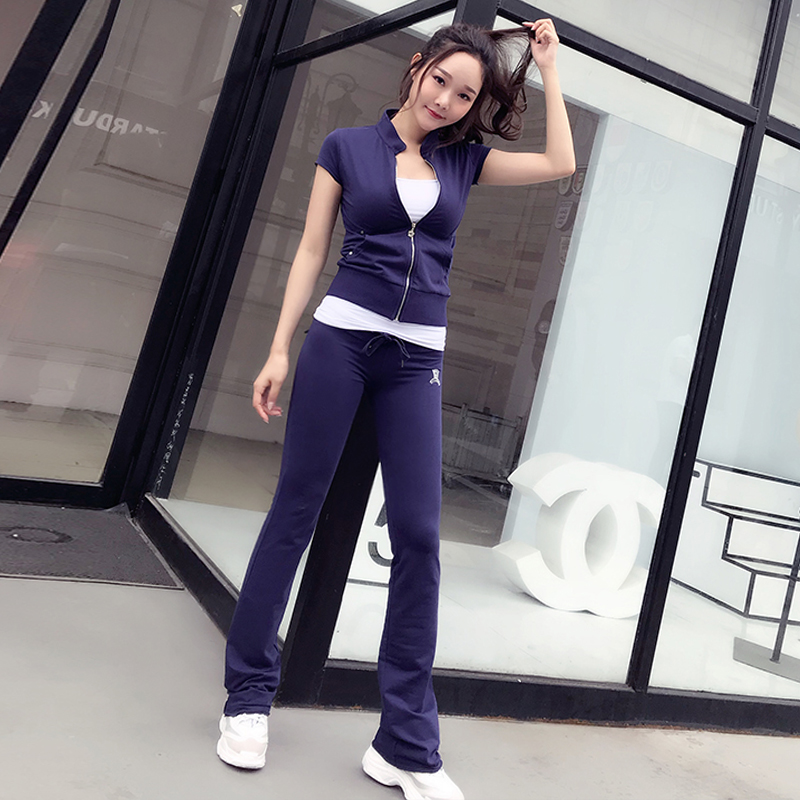 Sports suit female summer 2018 new fashion Korean version of the slim fit cotton casual wear summer short-sleeved two-piece suit