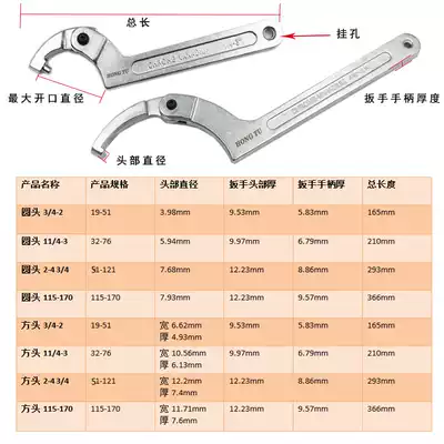 Locomotive damping adjustment tool Round nut hook type round head square head movable crescent wrench 19-170