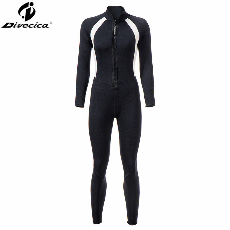 Divecica new pint black and white with female diving suit tailored girl's even body black white wetsuit