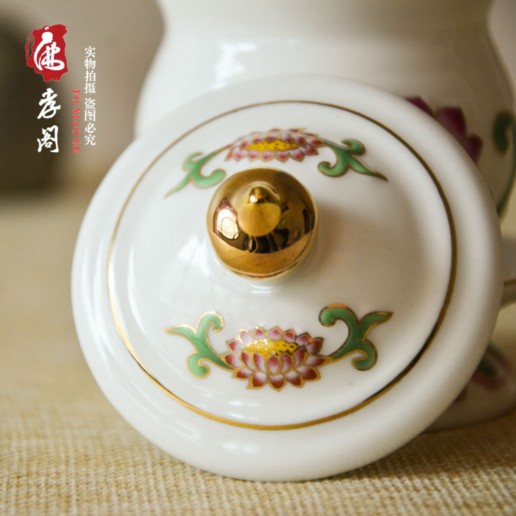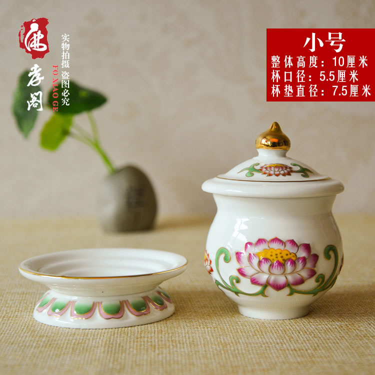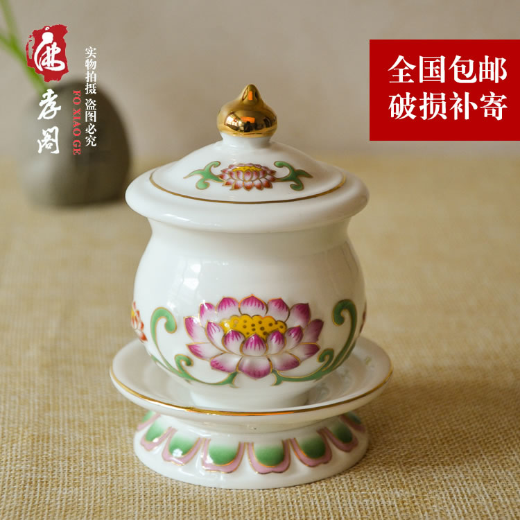 Ceramic colour painted embossed lotus Guanyin St. water glass Buddha front for a cup of great sorrow water for the Buddha's net water glass