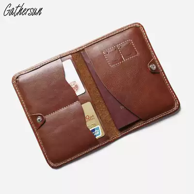 GATHERSUN handmade retro leather passport protective cover cowhide simple travel passport holder certificate storage bag