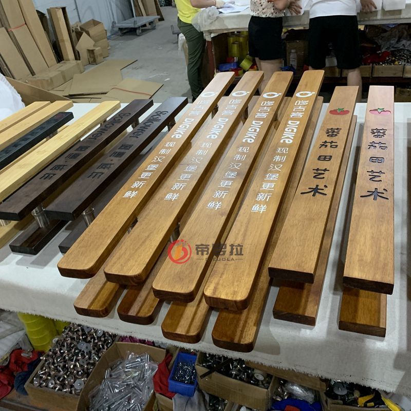Custom glass door handle solid wood carved door original wood engraved wooden door handle black custom LOGO spot