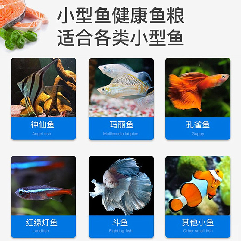 Small fish microparticles about 60 grams of submersible material Small fish microparticles about 130 grams of submersible material Small fish flakes about 35 grams of floating material Small fish microparticles bagged 50 grams of submersible material Small and medium-sized mixed culture small particles