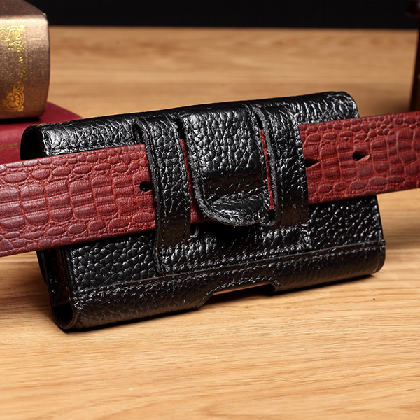 Mobile phone fanny pack male leather wear belt horizontal section ultra-thin 4 7 5 0 5 5 6 57 inch mobile phone hanging fanny pack leather case