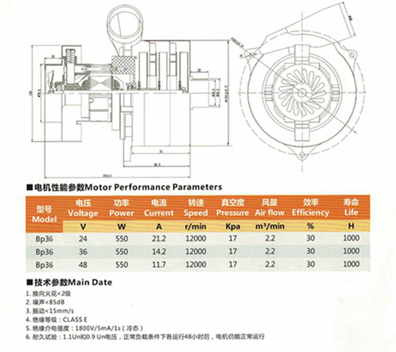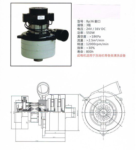 24V 36V three-layer suction motor side tube bottom turning opening with mouth wash floor cleaner suction motor