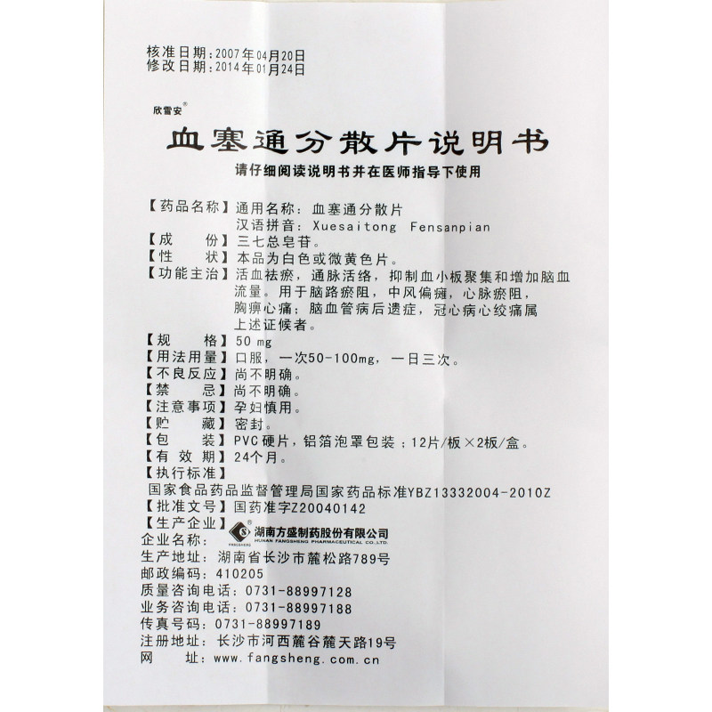 Low to 12 8 boxes) Xin Xue'an Blood Seavia Sub-bulk sheet 50mg * 24 Sheet Boxes Brain Road Bruises Stroke hemiplegic Heart Obstruction Chest of Chest Pain