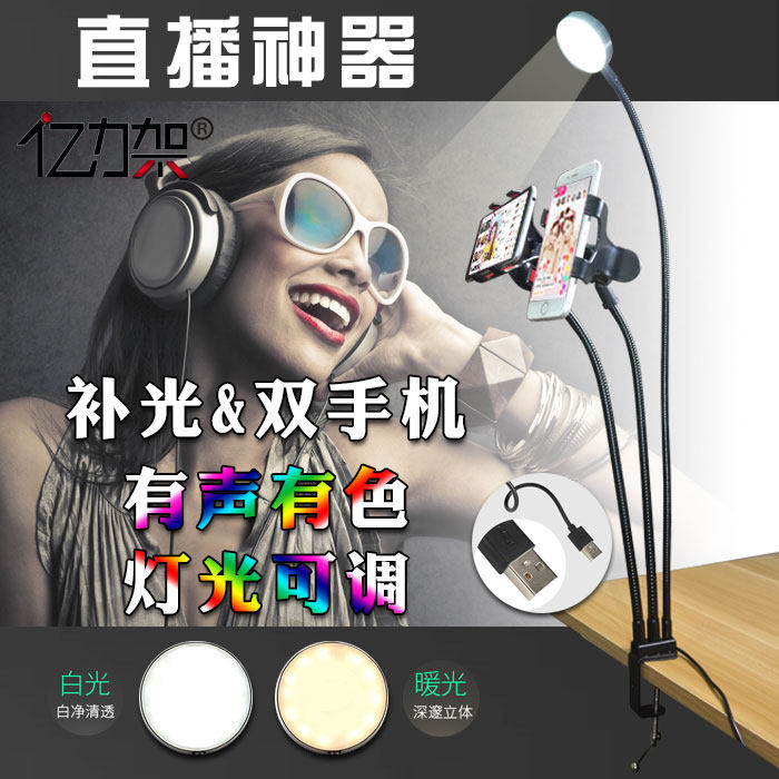 Anchor mobile phone live broadcast bracket fill light desktop multi-functional vibrato YY fast hand universal dual mobile phone live broadcast artifact