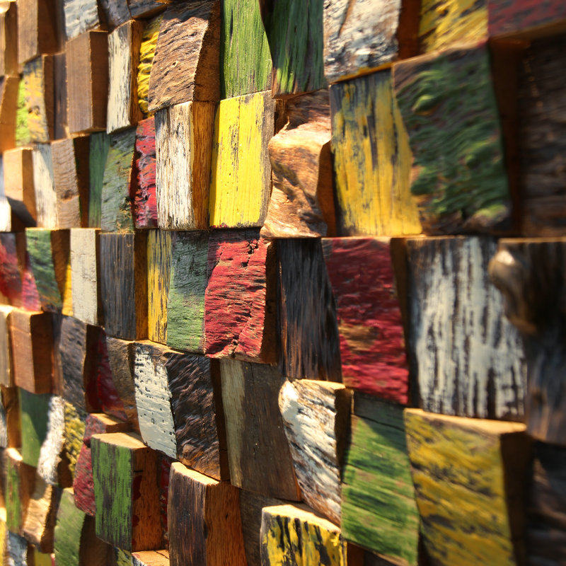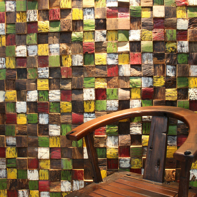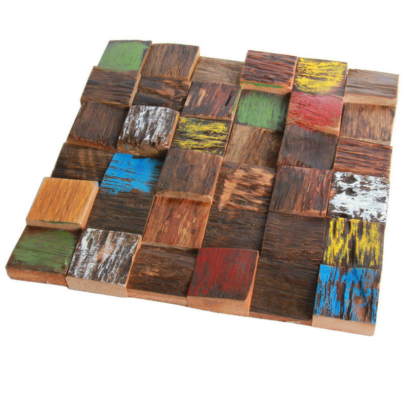 Old boat wooden mosaic solid wood TV background wall paste color art living room restaurant wall decoration retro material