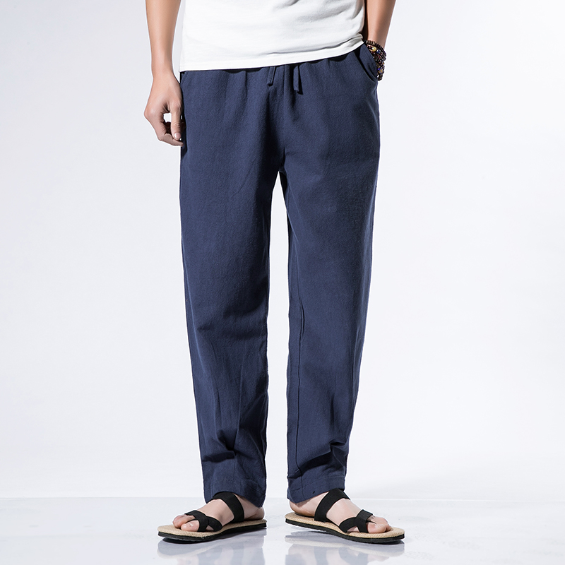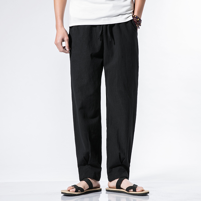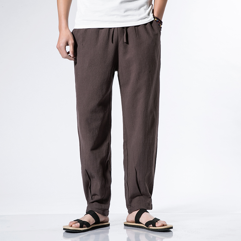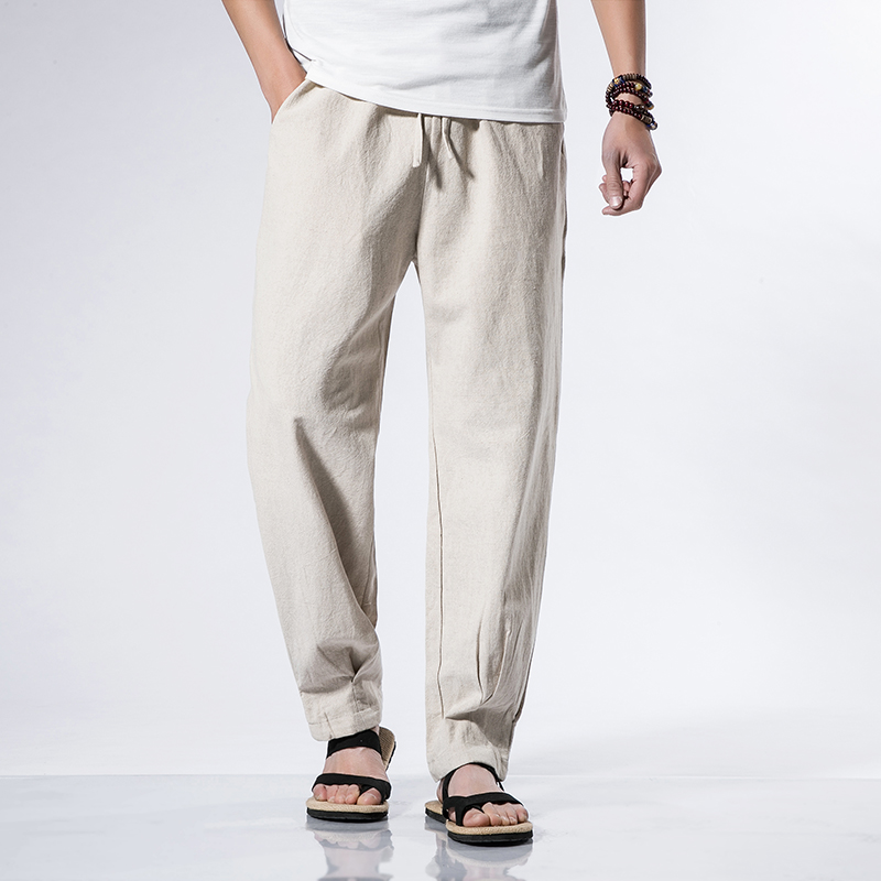 Linen casual pants Chinese Wind loose broadlegged pants men's cotton linen pants big size Fat son Harun Pants Summer Light Cage Pants