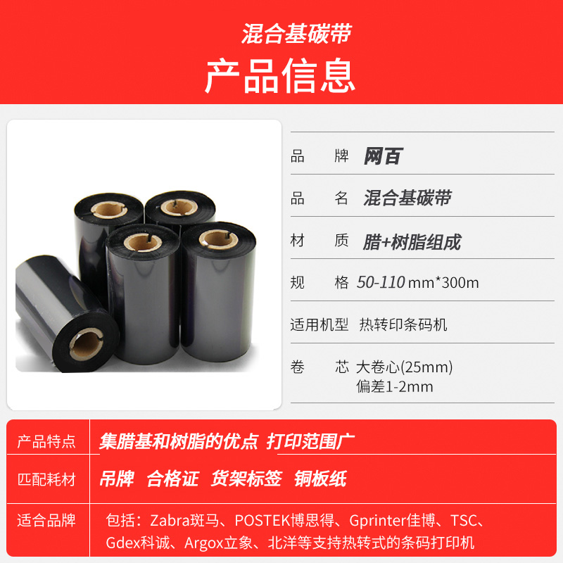 Hybrid Base Carbon Band Clothing Pendant Printed Carbon Ribbon 50 50 To 110mm 300m Bar Bar Barcode Printing Press Printing Carbon Ribbon