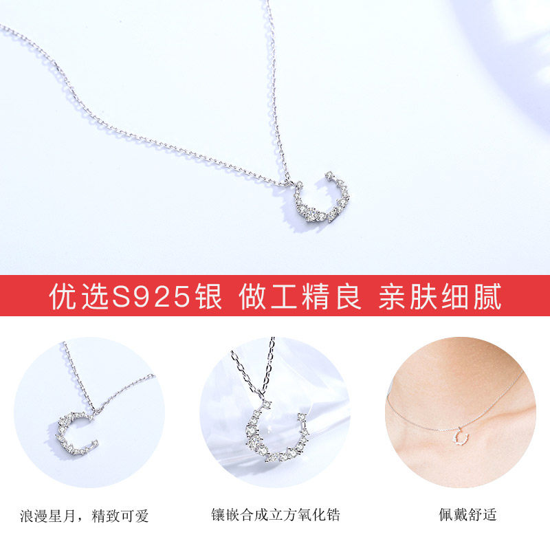 JG moon necklace female summer sterling silver light luxury niche design sense 2021 new wild clavicle chain birthday gift
