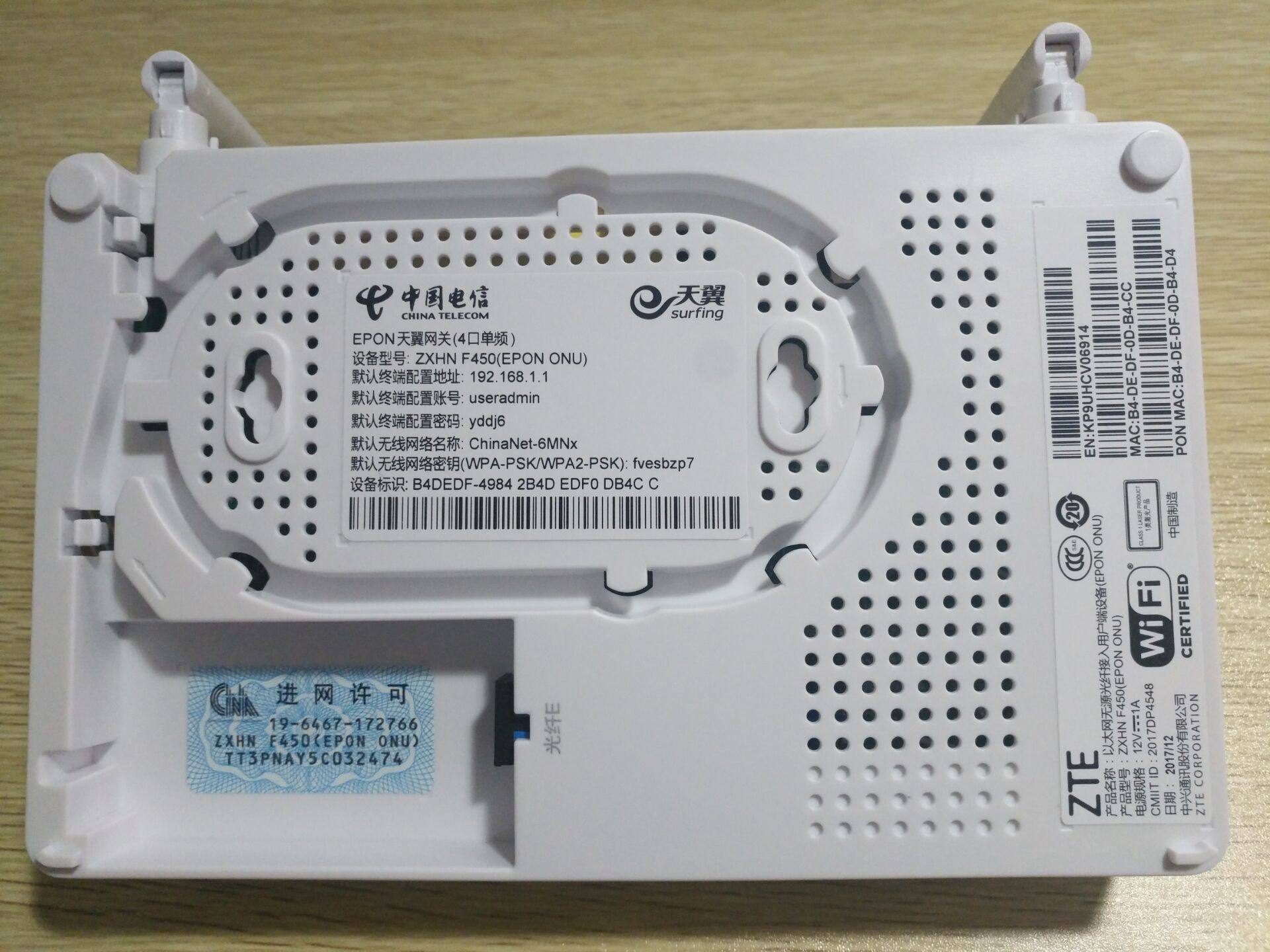Hubei Telecom original ZTE F450 home wing gateway gigabit optical fiber cat router WIFI all-in-one machine