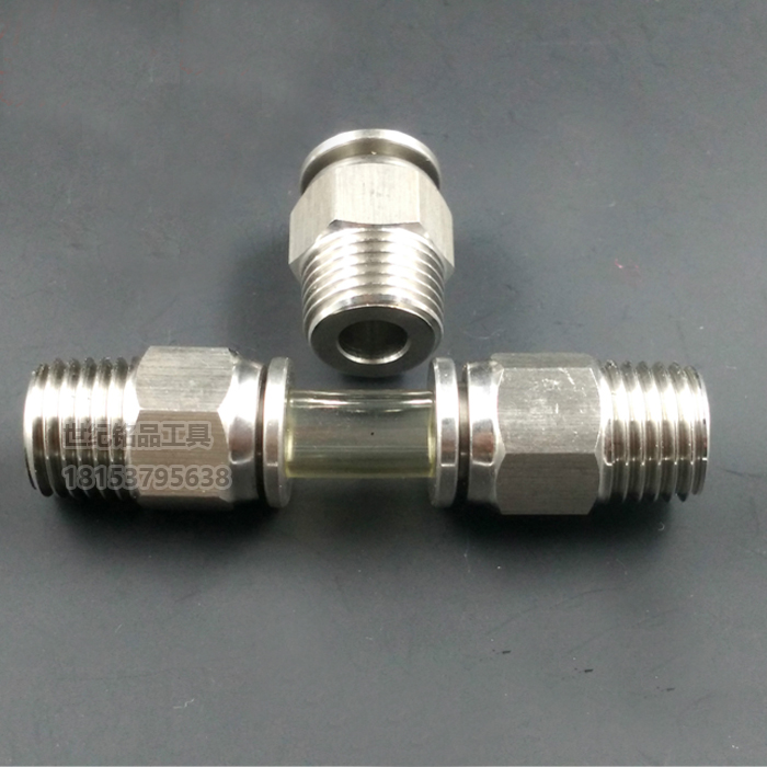 304 stainless steel quick-insert head PC connector plug-in windpipe quick joint PU PV pipe pneumatic gas source joint