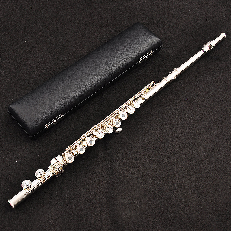 Flute instrument beginner student 16 holes drilled silver plated French keys Key cover carved silver plated C tail